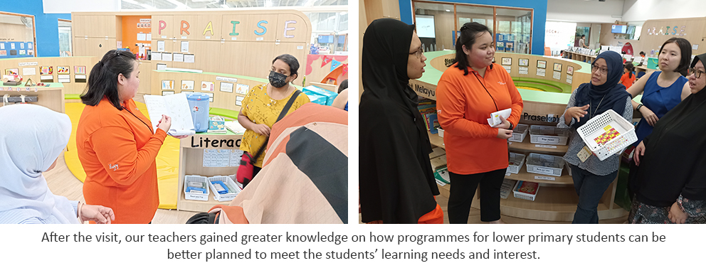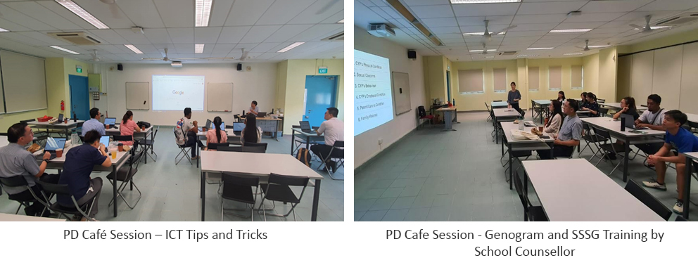 In terms of professional learning opportunities through assignments and developmental relationships, the school recognises the value of peer-to-peer collaboration, sharing of good practices, learning journeys to other organisations and on-the-job training as powerful development tools. Hence, time and space are set aside for staff to be engaged in these meaningful learning and bonding opportunities at school level for their professional growth and wellness.