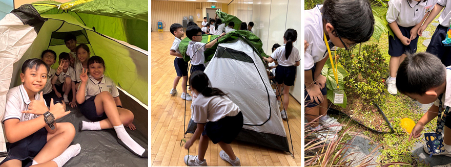 The Outdoor Education module is designed to engage students in activities involving outdoor elements such as pitching a tent and exploring the eco garden. Students will also get the opportunity to take up an active role in taking care of the environment through the adoption of a plant and observe the changes over time.