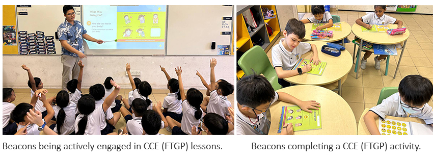 These lessons which include CCE Form Teacher Guidance Period (FTGP), CCE Mother Tongue Languages (MTL) and Programme for Active Learning (PAL) provide the time for teachers to engage and build relationships with their students through discussions and effective classroom strategies. Broadly, there are three ways CCE lesson time is used: